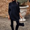 Irregular Hem Side Split Loose Pullover Turtleneck Sweater